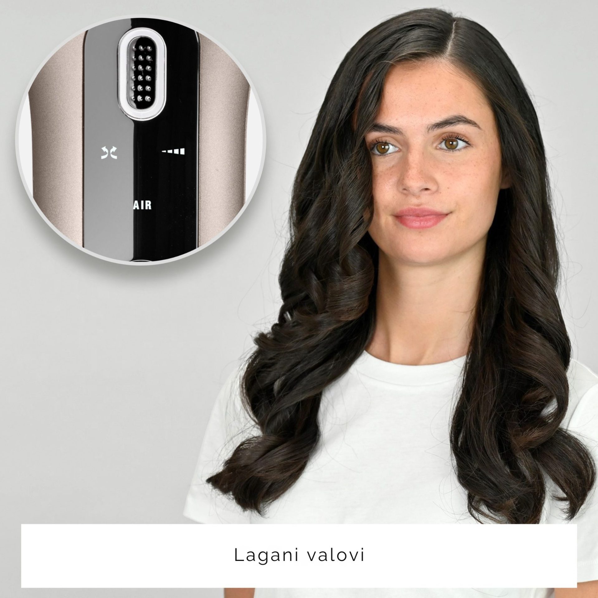 Nježna toplina i protok zraka zajedno oblikuju kosu sa svih strana, čime kovrče i valovi traju dulje, a kosa je zaštićena od prekomjerne topline.